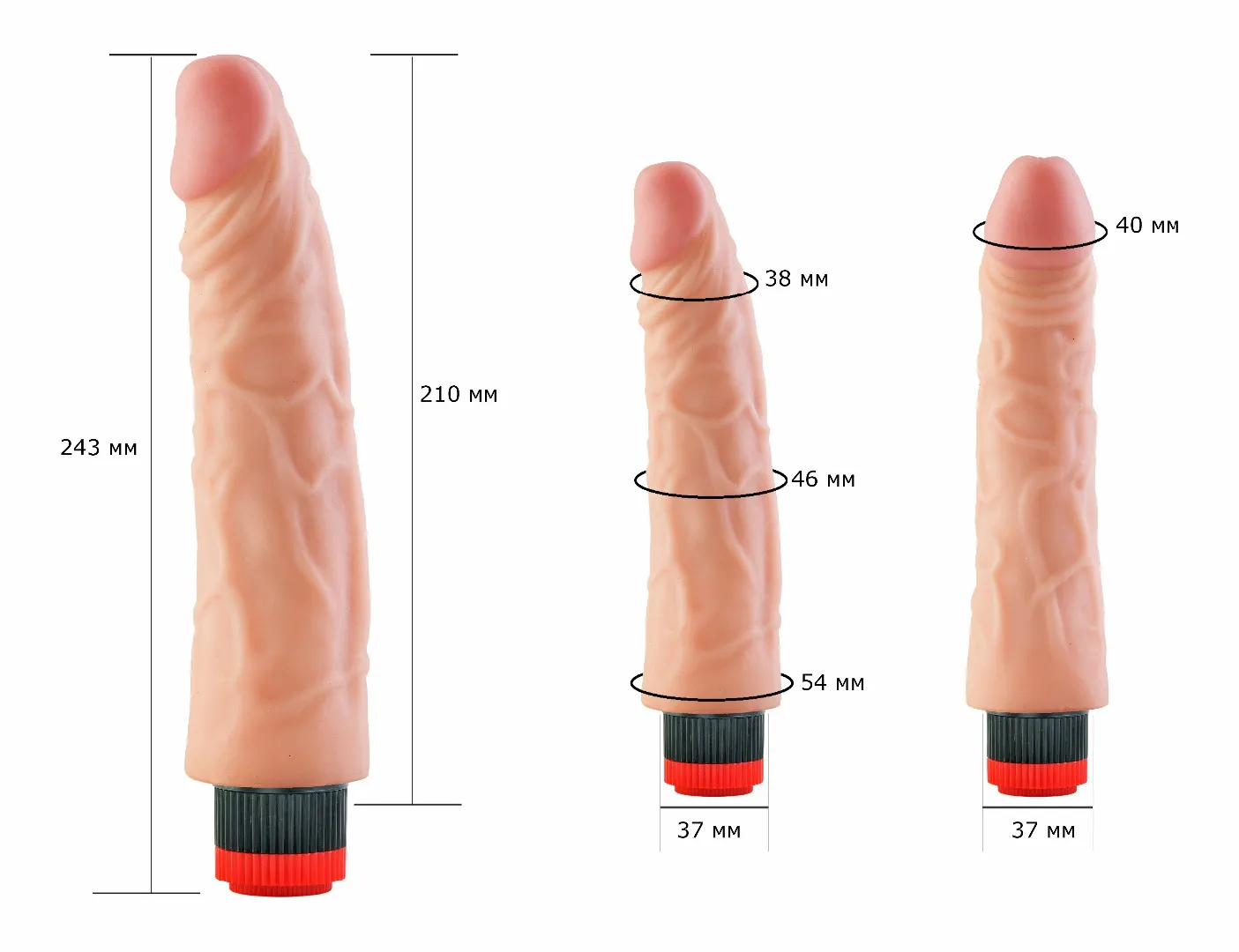 Вибратор-реалистик телесного цвета. Имеет форму члена с ярко-выраженной головкой, рельефный, выполненный из материала неоскин, не имеет швов. Скорость вибрации регулируется кнопкой у основания изделия. Характеристика: работает от 2АА батареек (нет в комплекте), общая длина – 24,5 см, рабочая длина- 21 см, максимальный диаметр- 5,5 см, без запаха, упакован в пленку.