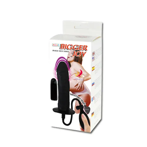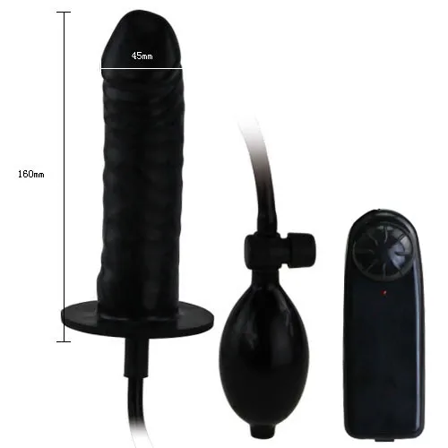 Фалоимитатор черного цвета в упаковке. Имеет выносной пульт управления и грушу для накачивания.  Общая длина - 15,5 см, рабочая длина - 15 см, максимальный диаметр 4 см. Батарейки в комплект не входят.