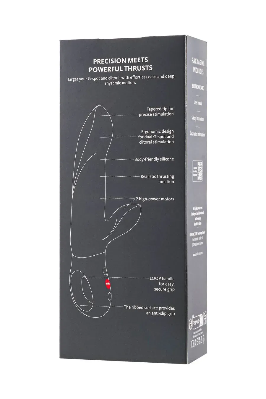 • 8 программ поступательных движений и 6 программ вибрации — широкий выбор режимов для индивидуального выбора интенсивности и типа ощущений, от мягких до более мощных.