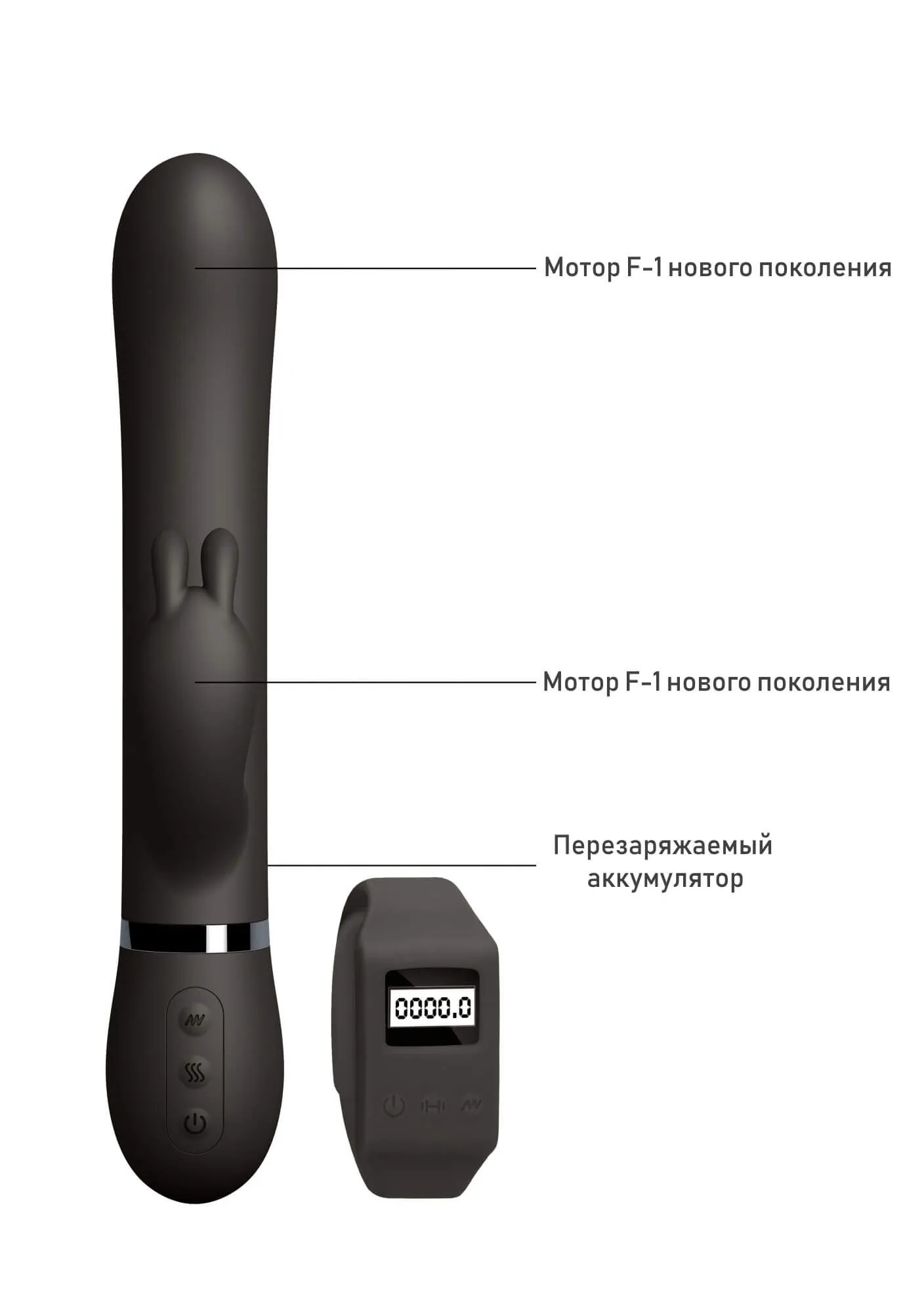 Kegel Rabbit сочетает в себе функциональность тренажера Кегеля и вибратора с дистанционным пультом управления. С ним Вы сможете поддерживать мышцы тазового дна в тонусе и получать удовольствие во время тренировок! У него есть два мотора, один из которых расположен в стволе с загнутым кончиком, а второй - в стимуляторе в виде зайчика, направленного на клитор. Благодаря одновременной стимуляции клитора и влагалища ощущения от интимного массажа станут более яркими и позволят быстрее достичь оргазма. У обоих моторов есть 10 режимов вибрации, переключающихся кнопками на корпусе игрушки или на браслете.