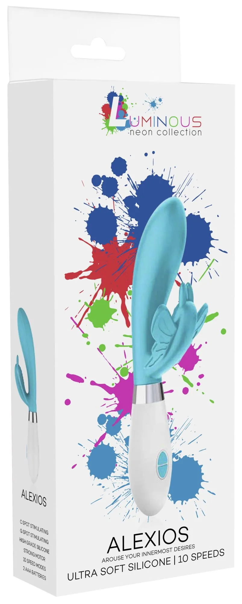 Alexios – вибромасссажер кролик. Эта игрушка имеет округлую утолщенную головку и гибкий клиторальный отросток, что делает стимуляцию более яркой. Вибромассажер имеет два мощных двигателя, по одному в каждом отростке, имеющих 10 функций вибрации, способной достигать на вагинальном стволе 15000 и на клиторальном отростке 5200 оборотов в минуту, при этом уровень звука не превышает 50 дБ.
