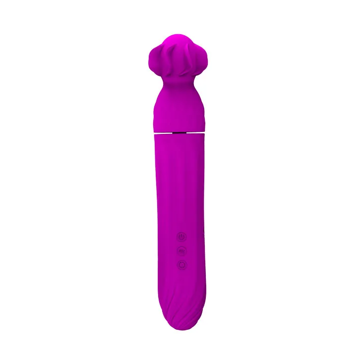 Двухголовый вибростимулятор пурпурного цвета, изготовленный из силикона. Имеет рельефную голвку с расположенными на ней мягкими лепестками. Имеет функцию как вибрации (12 функций), так и ротации (4 функции). Нижняя часть может исключительно вращаться (без вибро). Управление осуществляется кнопками в основании игрушки. Заряжется при помощи USB (есть в комплетке) Общая длина - 21 см, макс. диаметр - 3,5 см. Длина вибрирующей головки - 7 см. Водонепроницаемый. Вес игрушки: 223 гр. Упакован в картонную коробку. Страна изготовления- Китай.