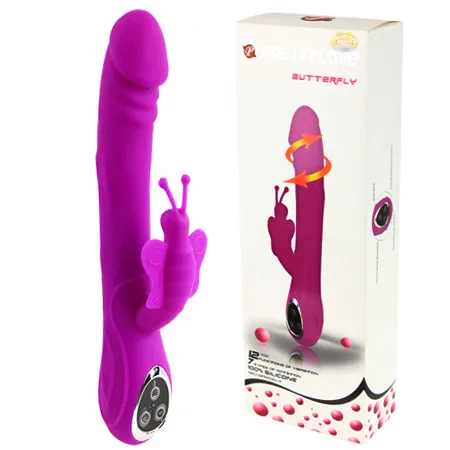 Многоскоростной перезаряжаемый вибратор пурпурного цвета. Имеет клиторальный стимулятор в виде бабочки с усиками. Рельефная поверхность с ярковыраженной головкой. Материал - силикон. Возможно раздельное управление вибрацией основного ствола и отростка. 12  режимов вибрации, 7 режимов ротации (головка может вращаться в обе стороны). Управление производится при помощи сенсорных кнопок у основания игрушки. Общая длина - 25,5 см, рабочая длина - 16,5 см, максимальный диаметр - 4 см, длина клиторального отростка - 9 см, диаметр - 2,5 см (размех крылышек - 5 см). В комплекте зарядное устройство, инструкция на русском языке, мешочек для хранения