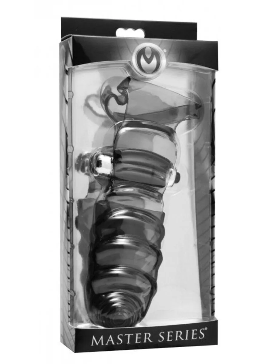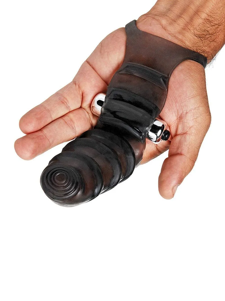 Водонепроницаемая, текстурированная пальцевая насадка надевается на указательный и большой пальцы, закрепляется ремешком на запястье, который также закрепляет вибрирующую пулю на ладони.