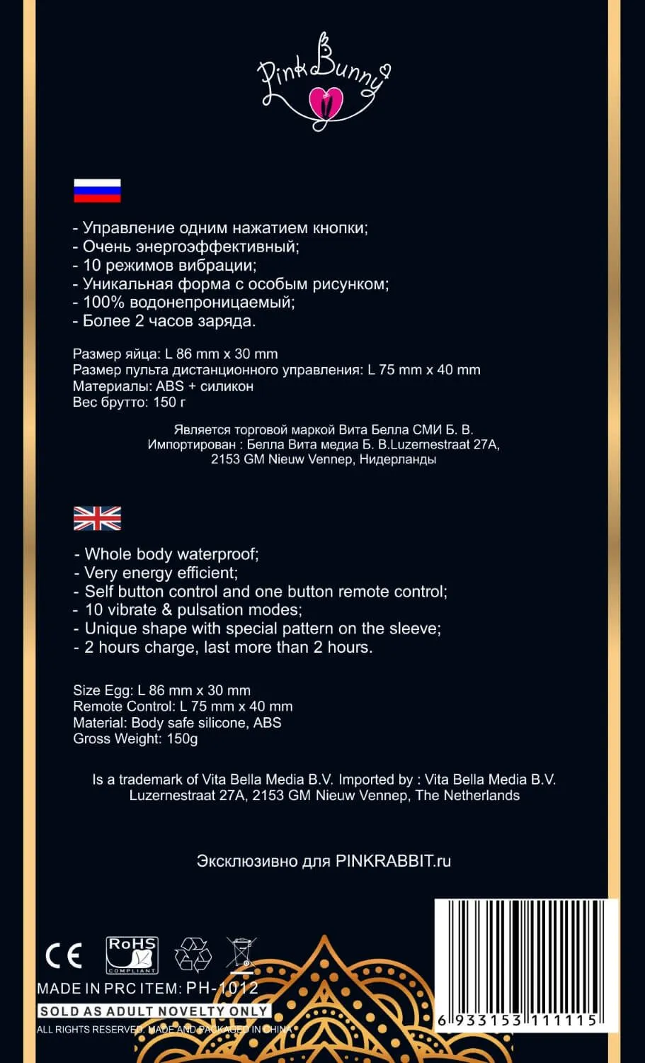 Используйте с лубрикантами только на водной основе, очищайте специальным средством для интимных игрушек либо мягким мылом и водой. Храните в отдельном тканевом мешочке.