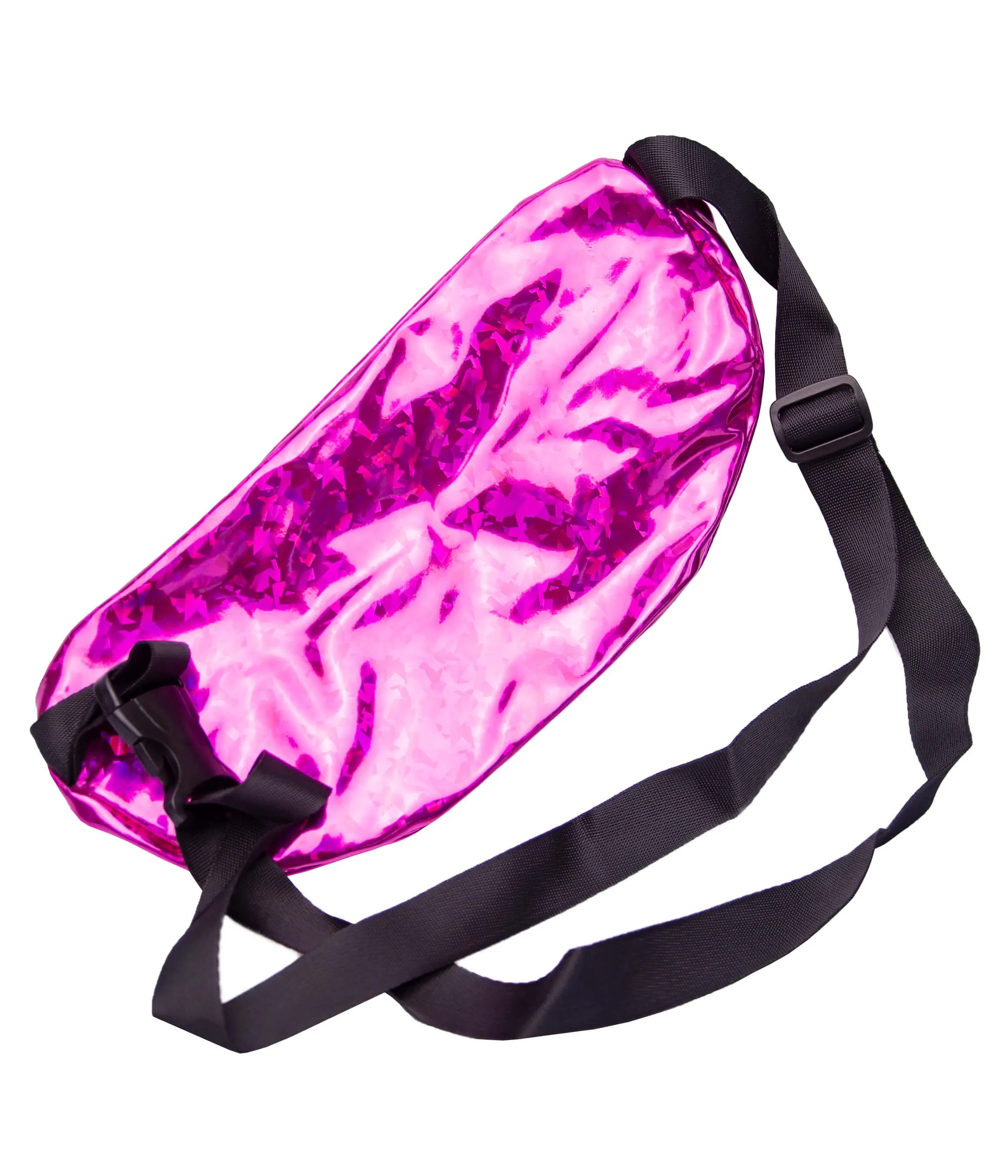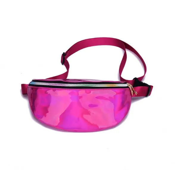Сумка-бананка из розового голографического материала.
