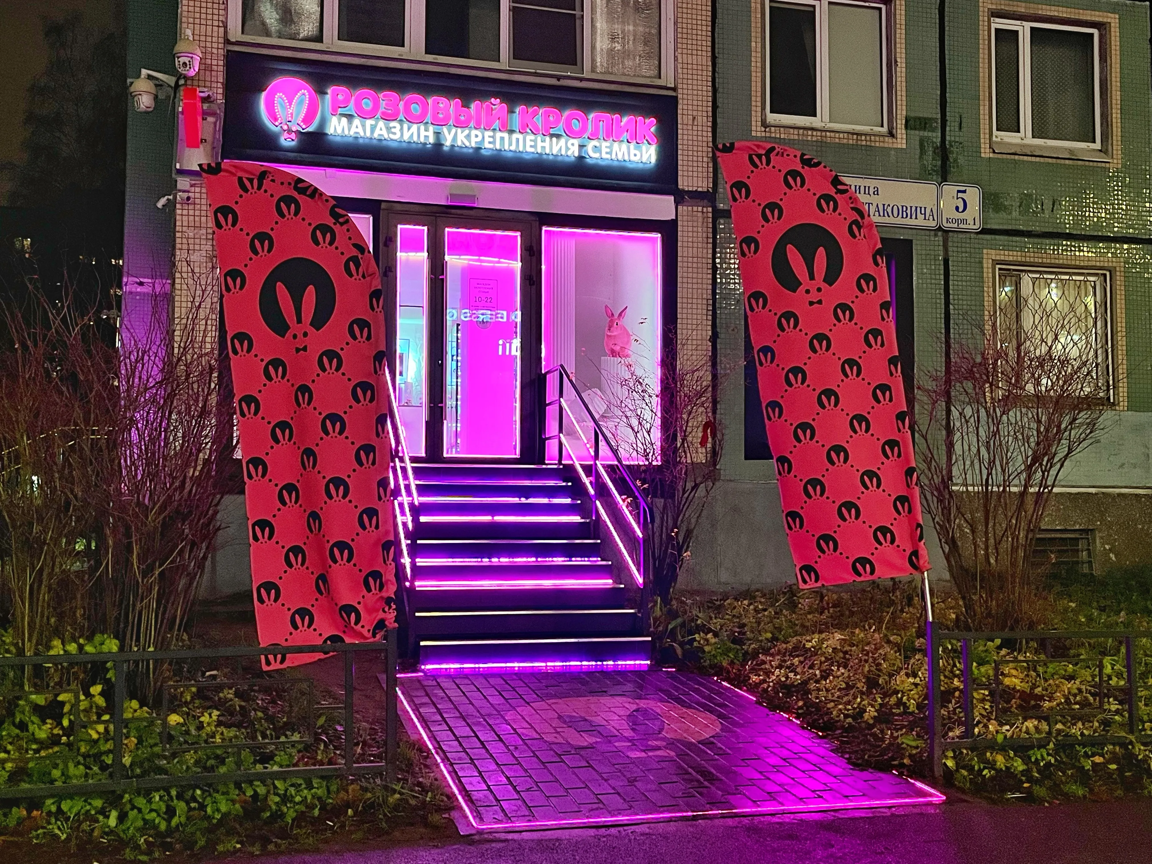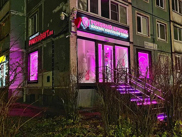 от м. Проспект Просвещения на выходе повернуть налево и пройти 400 м в сторону ТЦ Гранд Каньон. Магазин Розовый кролик находится напротив ТЦ «ГРАНД КАНЬОН», со стороны ул. Шостаковича